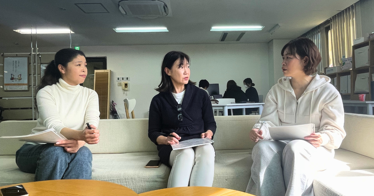 月に一度、スタッフ全体で各家庭のケース共有や意見交換を行う会議があります。また、同じご家庭を担当するスタッフ同士で「チームミーティング」を行うことも。日頃のサポートを振り返り、より良い方法を話し合える仲間がいつもそばにいます。