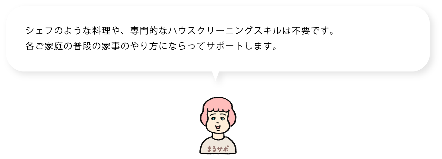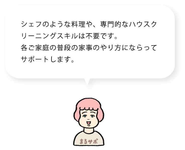 家事も育児もギスギスも。まるサポは全部ひっくるめて、状況の整理から、暮らしがまわる仕組みづくり、生活まわりのサポートまでお手伝い。家庭ごとに合ったサポートを用意して、各家庭をガイドとケアスタッフのチームで支えます。まるサポ公式サイト>